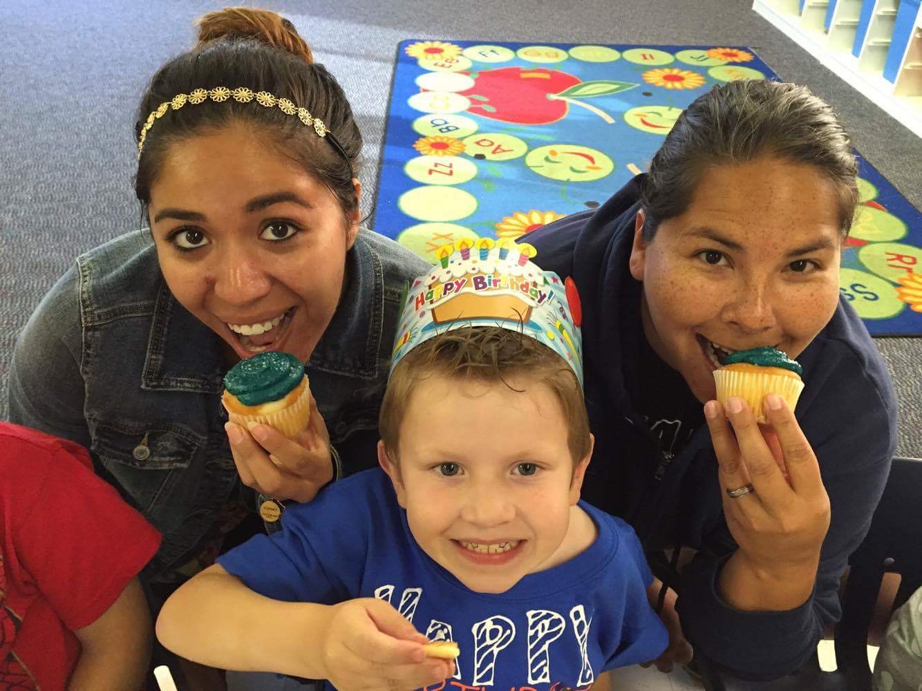 Ms Veronica and Ms Paulette eating his cupcakes! Those are his teachers!